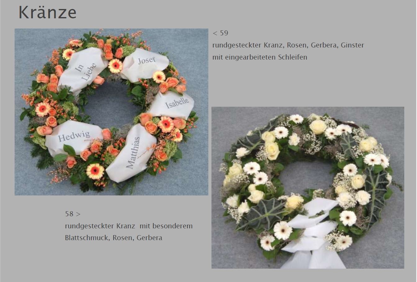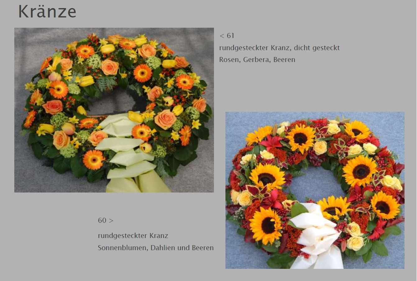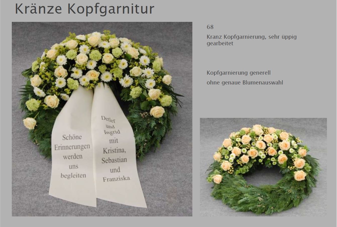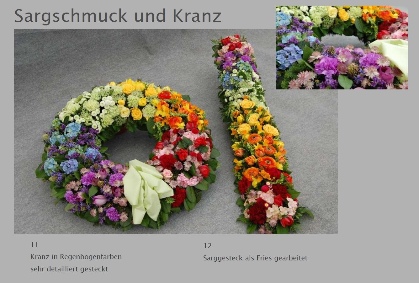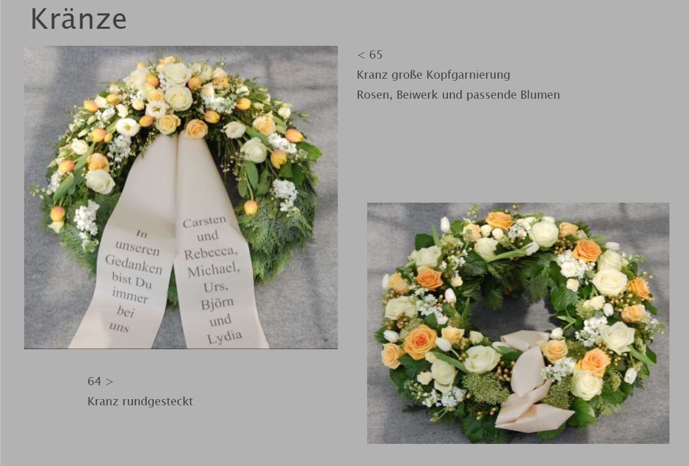 Blumen vermitteln beim Abschied eine besondere Botschaft. Jede Blüte trägt eine Bedeutung: Schönheit, Dank, Erinnerung. Ob als Kranz, Gesteck, großer Sonnenblumenstrauß oder einzelne Rose: Die Trauerfloristik macht jeden Raum warm und würdevoll. Wir helfen Ihnen gern bei der Auswahl. Hier sehen Sie einige Beispiele für Sargschmuck. Auch passende Schleifentexte haben wir für Sie zusammengestellt.